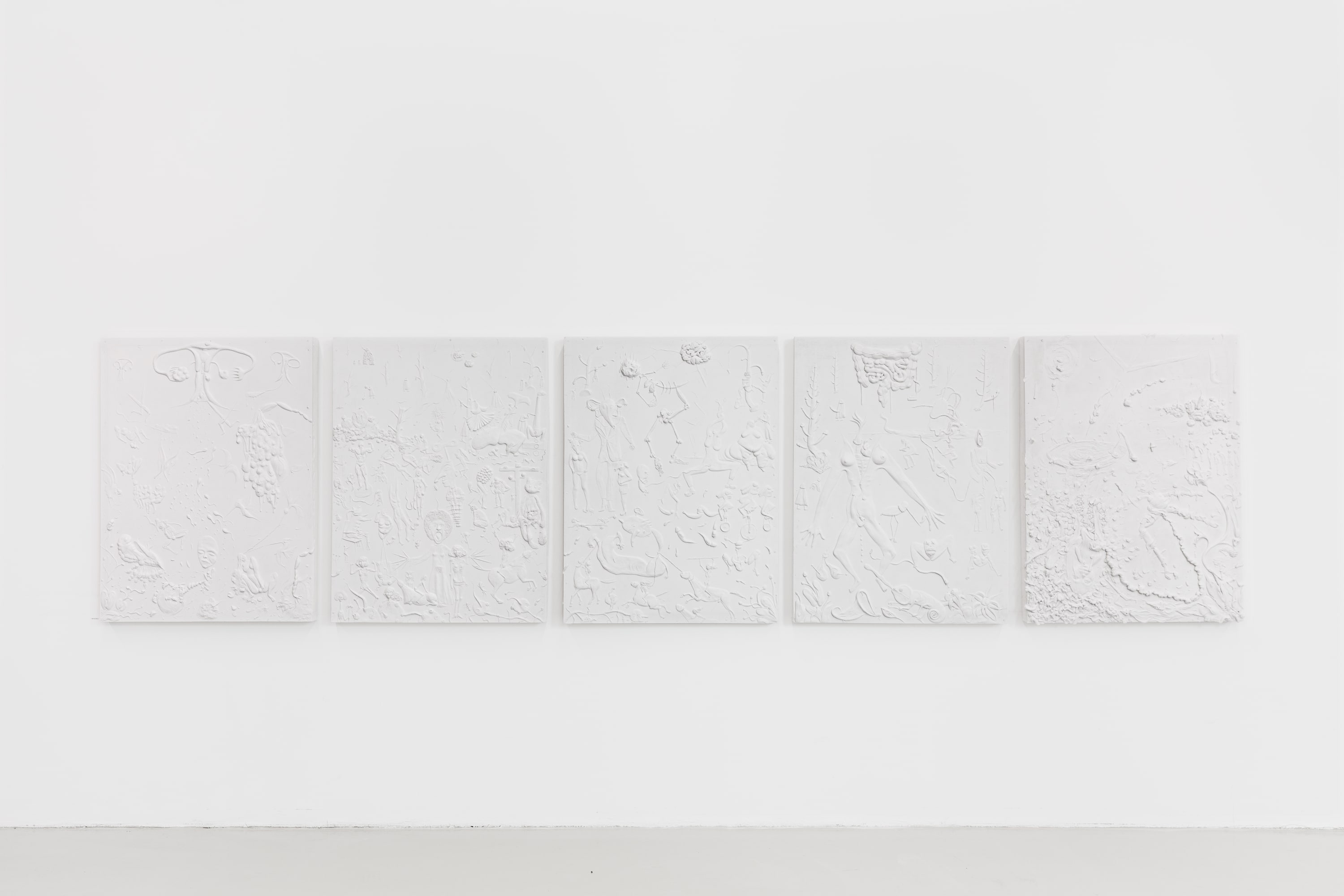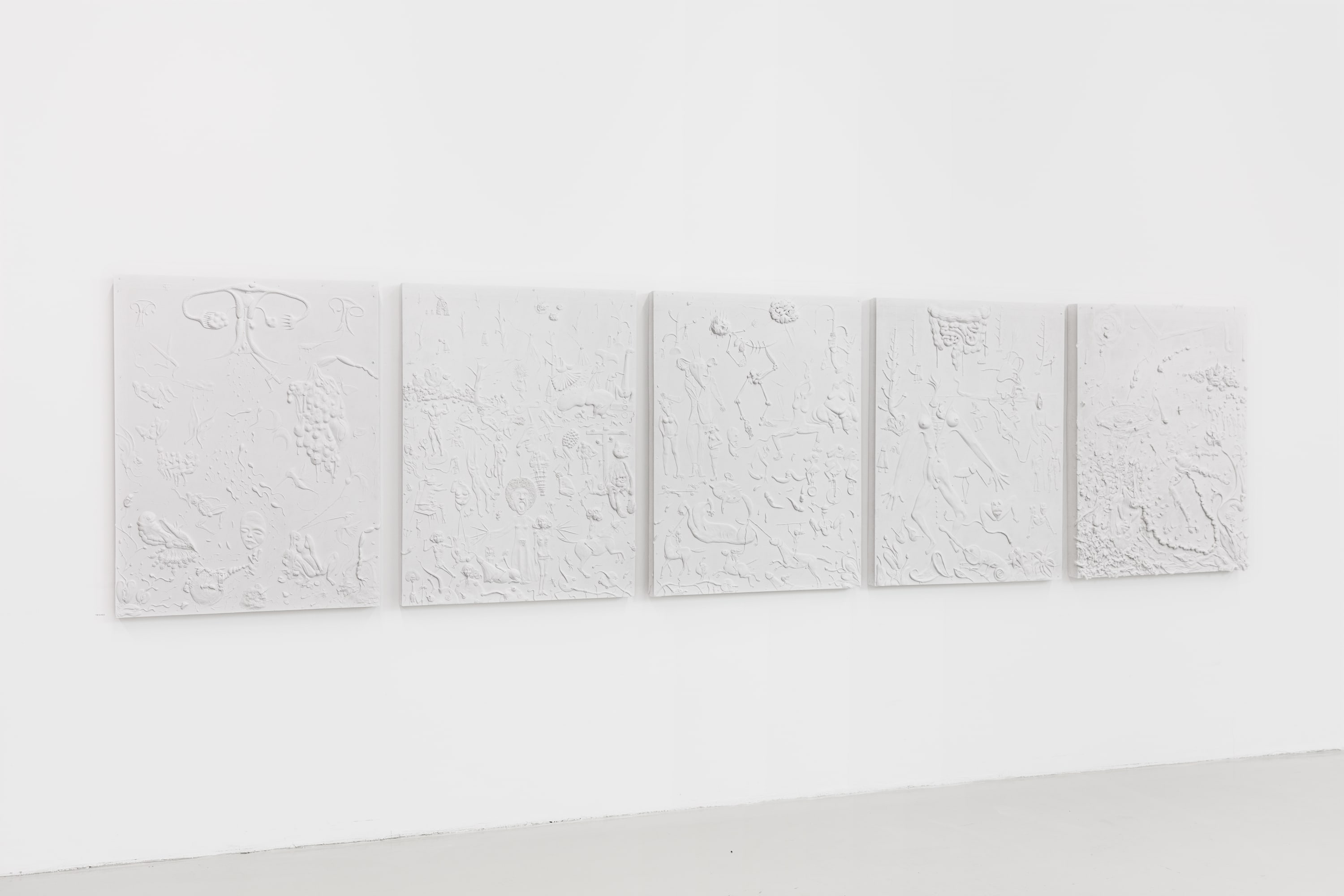 Tim Noble Installation View ‘Imaginary beings', 2021, Cast in jesmonite, each panel: 94.44 x 121.92 x 7.62 cm 37 1/8 x 48 x 3 in -