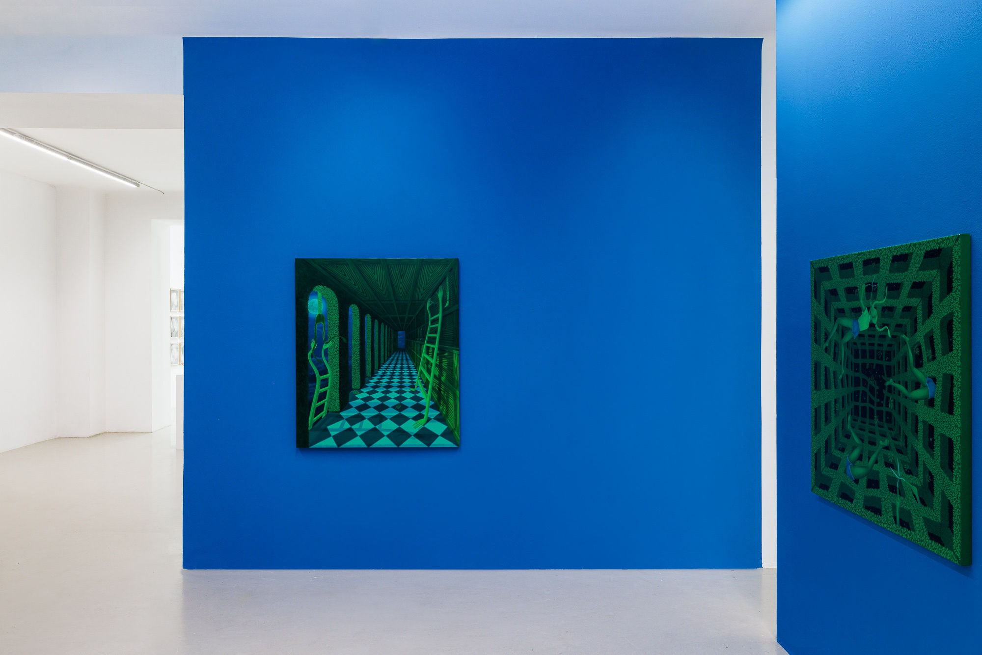 Galerie Kandlhofer is thrilled to present a series of new paintings by Katia Lifshin (b. 1993, Ukraine). This new body of work offers a surreal exploration of the connection between psychological spaces and physical realms, opening a painterly portal to the complexity of our inner worlds.Katia Lifshin (b.1993) is a Ukraine-born Israeli artist. In her practice, nature is a recurring theme and point of reference. Unconventional natural phenomena – such as bioluminescence or spiral tree trunks – find their way into her surrealist world, which is both inspired by everyday life as well as psychedelic experiences. The works also express a constant shift between light and darkness as an artistic interpretation of constantly- shifting emotional states.She relocated to the U.S in 2012 and studied painting and sculpting at Pima College, Tucson, Arizona. Returning to Israel in 2018, she now lives and works in Tel-Aviv.